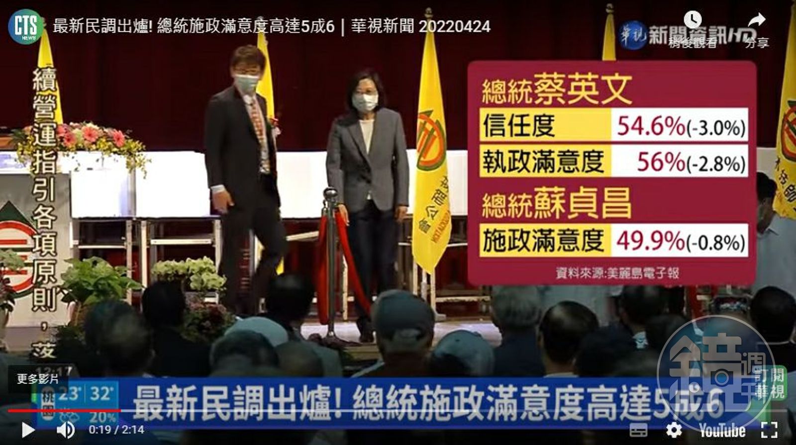 華視今日的午間新聞在報導「總統施政滿意度」時,圖卡上不小心錯將行政院長蘇貞昌的頭銜改為「總統」,此事被網友發現後也被PO上「爆廢公社」臉書。
