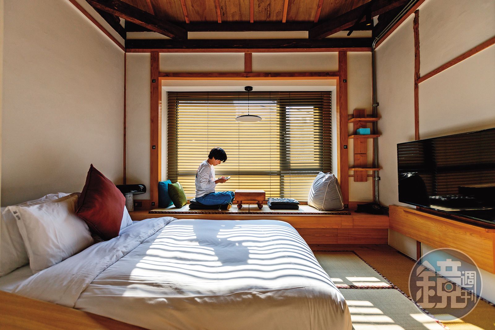 為了重現老屋本來的樣貌,陳寶全不只親自設計,還大量保留原本老屋的建材,能盡量用二手檜木補強的,也不手軟;無法使用檜木的則改用日本松木,希望維持老房子的典雅質感。