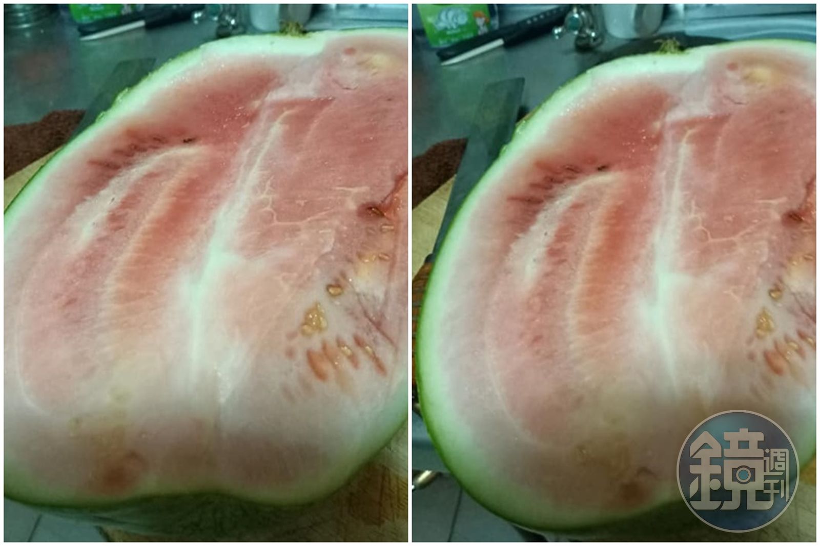 一名女網友昨(27日)在臉書社團「Costco好市多 商品經驗老實說」貼出2張西瓜照,無奈表示:「我不是奧客,可是我很無言。」只見大西瓜剖開後呈現不均勻的肉色,中間果肉像有一道白色裂痕,看起來不太美味,跟一般印象大紅西瓜有很大的落差。