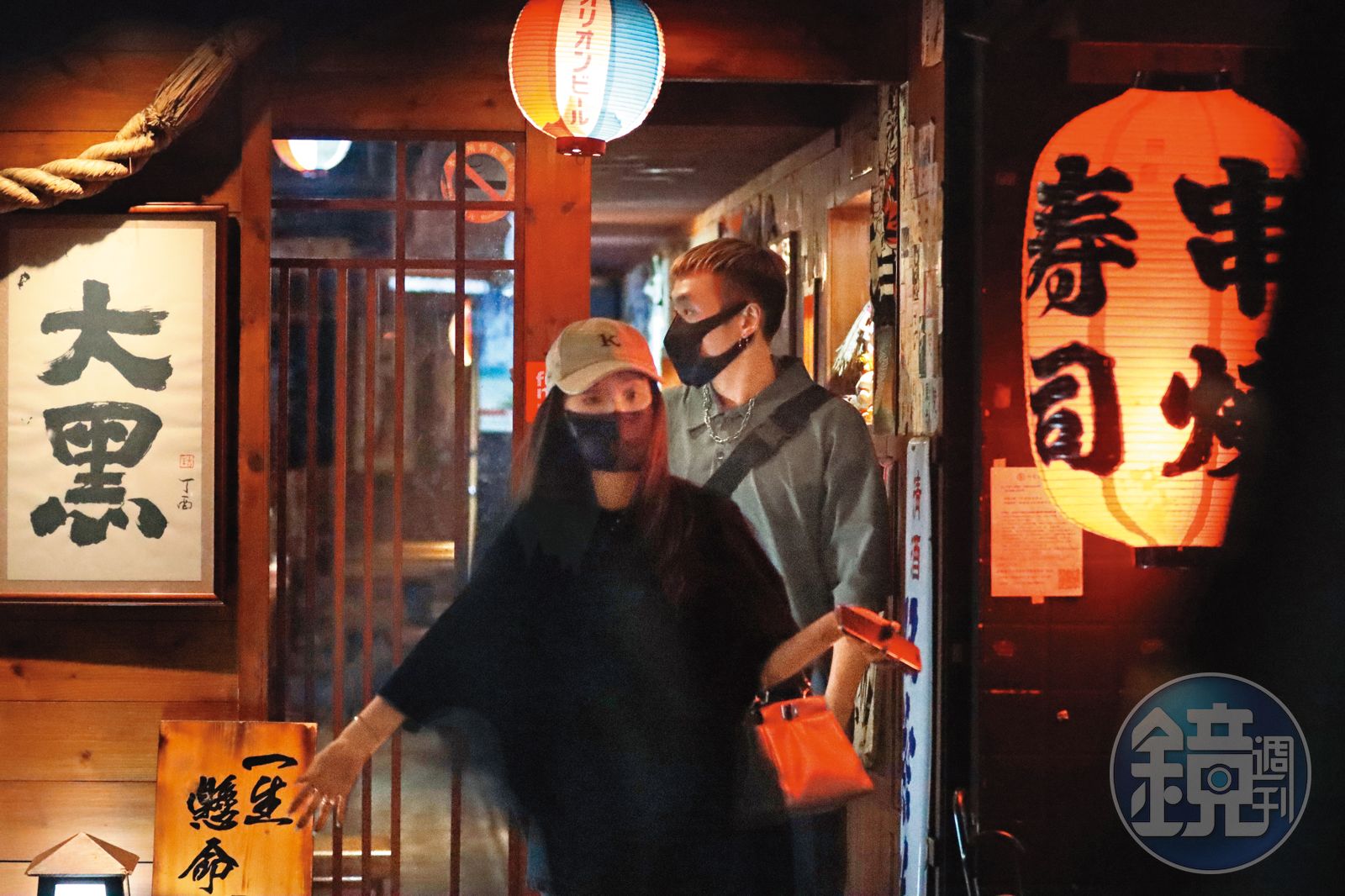 4/27 23:14,在居酒屋吃完晚餐,陳芳語(左)與男友彥文(右)離開,且將發現愛車被開罰單。發布時間:2022.05.04 05:58 臺北時間