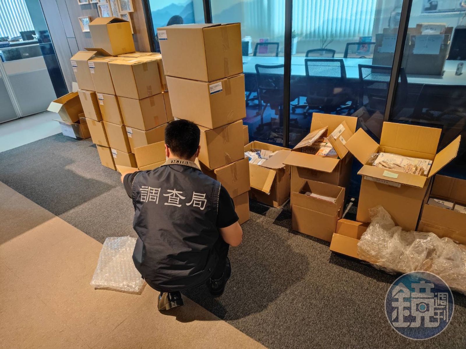 調查局搜索後,查扣未經食藥署核准的採指尖血新冠肺炎抗體快篩檢測試劑成品2萬9,782劑、快篩試劑卡殼半成品109萬1,600劑。