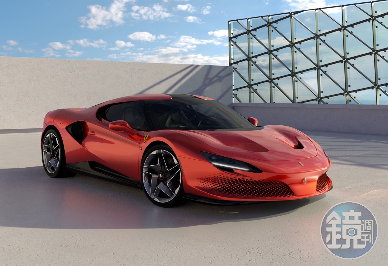 這台獨特的新車在設計層面的核心特點,就是廣泛使用程式化參數建模技術和3D原型設計(增材製造技術)。因此,Ferrari Styling Centre法拉利設計中心團隊和馬拉內羅的工程師們得以重新設計前格柵和引擎進氣口。這種先進的製造工藝協助團隊設計出完美的3D格柵,使其與其他車身零件完美銜接,呈現出渾然一體的視覺美感。車身同樣採用程式化圖形設計,與前格柵設計進行呼應:使車窗、車頂和引擎蓋的黑色零件到車身的配色漸層清晰分明。而因兩側窗戶尺寸縮小且取消了後車窗的設計,前車身對烈日的阻隔效果也進一步提升,凸顯出Ferrari SP48 Unica鮮明的力量感。從俯視角度來看,車頂中央部分格外顯眼,包括位於尾翼前方;整合至碳纖維引擎蓋後方的進氣口幾何造型設計。俯瞰車輛便可發現Ferrari法拉利在SP48 Unica設計方面進行了大量研究,彰顯其在對稱元素和線條交錯下營造出的義式設計美學。