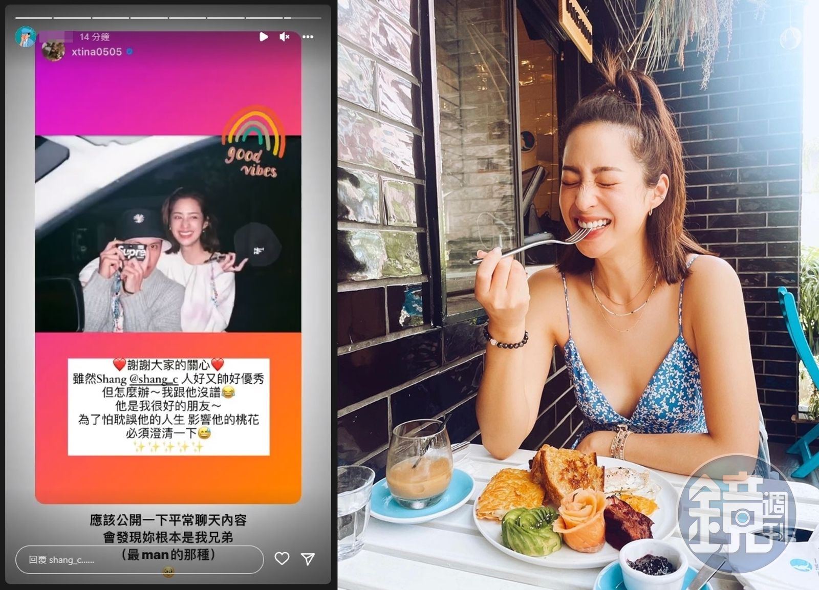 莫允雯在IG的限時動態讚周男「人好又帥好優秀」,並且笑中帶淚說:「但怎麼辦~我跟他沒譜。」強調自己跟他真的是「很好的朋友」。 至於周男則轉發莫允雯的限時動態,同時加上註解,「應該公開一下(跟莫允雯)平常聊天內容」「會發現妳(莫允雯)根本是我兄弟(最man的那種)」;他也透露跟「莫莫」2人平常都在互嗆,然後自己不富,也不是莫允雯的菜。 回顧莫允雯與緋聞男上個月的照片,不僅肉體緊貼,還有她整隻手從男生頸部繞到肩膀、男女前胸貼後背的模樣,且滿臉春風得意,只是如今異口同聲否認曖昧。