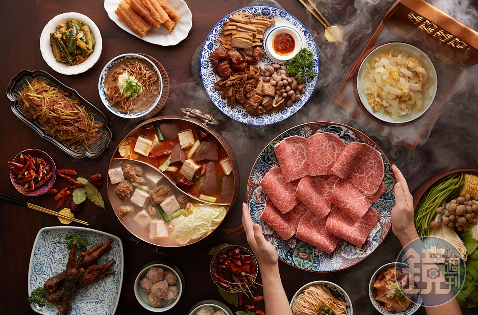 有燒肉專門的團隊接班後,也帶入肉品專業,精選來自日本A5等級的和牛霜降與赤身部位,鮮紅中透著分布均勻的大理石油花,下鍋涮3秒馬上起鍋,柔軟的口感與油脂的甜味在口中化開,非常適合與麻辣鍋搭配。
