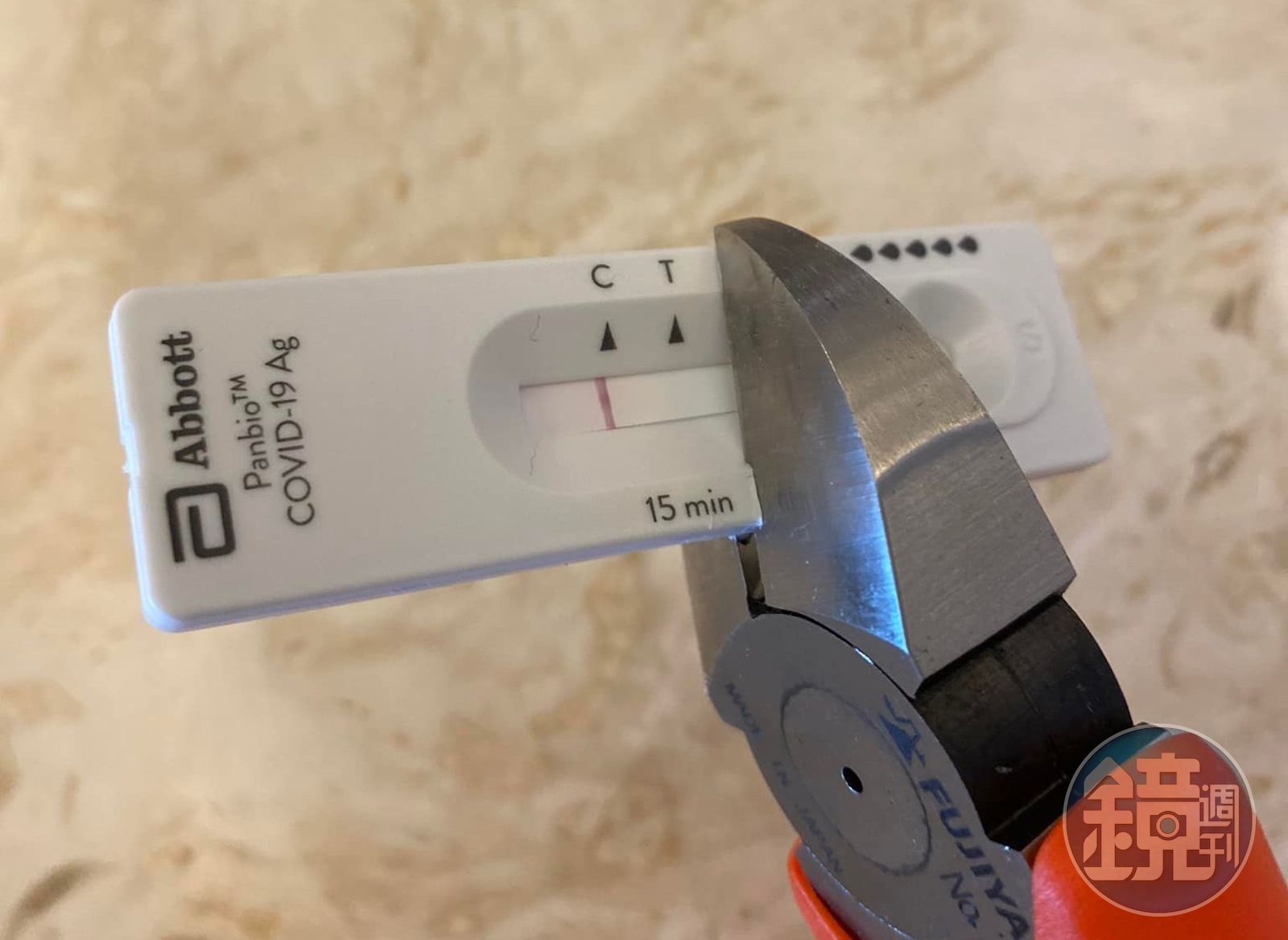 「快篩陽=確診」上路防冒用 醫實測剪斷快篩盤傻眼:出動剪線鉗才成功
