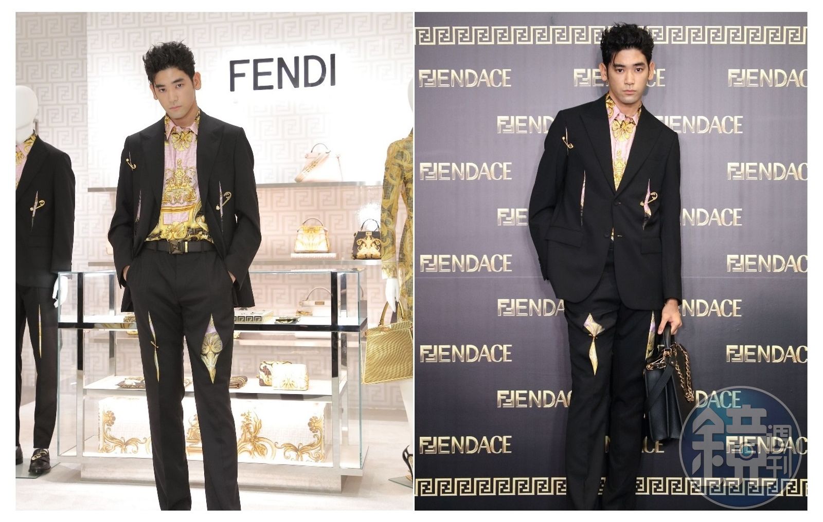 別針造型西裝外套 NT$91,000 FENDI Fendace。(FENDI提供)別針造型西裝褲 NT$30,500 FENDI Fendace。(FENDI提供)UTA本人對於FENDI與VERSACE合作的Fendace系列非常喜愛,「這個系列是從Fendi的女裝設計師Kim Jones與VERSACE的創意總監Donatella Versace兩人的友誼而生,很愛這種從好朋友的互動變成專業的合作,很有意義。」因為打籃球的關係,所以私下幾乎都穿運動服的他,也說自己因為進入時尚產業,可以嘗試各種不同的造型,像今天身穿Fendace系列的西裝,在褲子與西裝上的小細節就讓他十分喜愛。