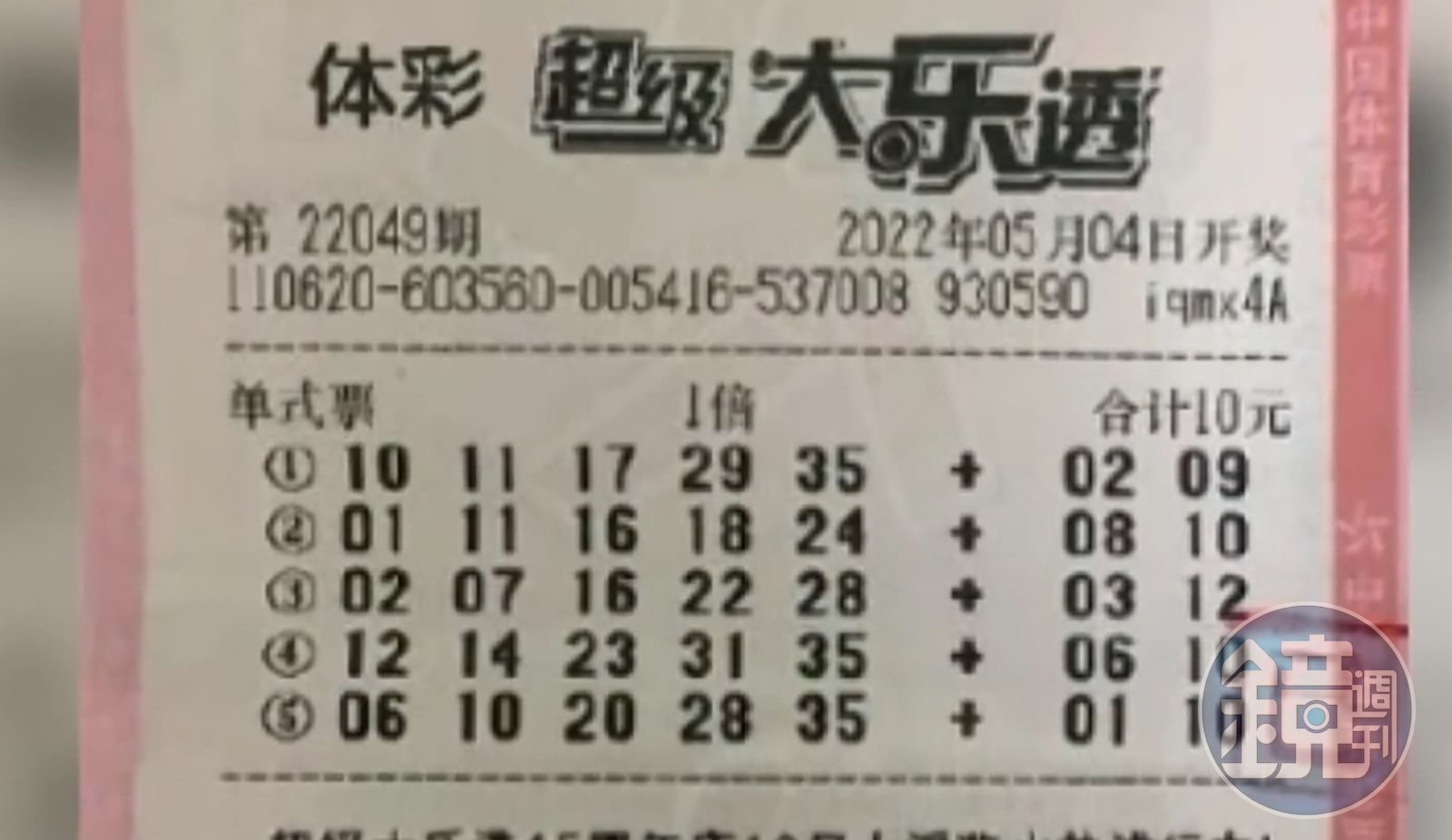 根據中國媒體《星視頻》報導,甘肅蘭州市一名詹姓男子(化名)買了2張彩券,僅花了人民幣25元(約新台幣110元),2張彩券出票時間只差了4秒,上面的號碼一模一樣。