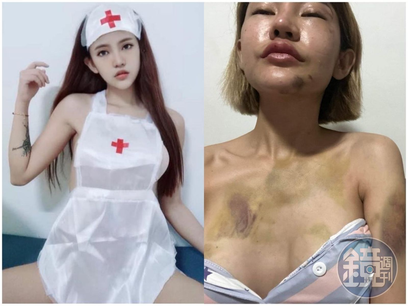 泰國知名網紅娃娃近日在臉書PO出自己多張遭家暴的照片,只見她全身上下青一片、紫一片,精緻五官更被得鼻青臉腫,與她過去性感甜美模樣相差甚遠,對此,娃娃坦言男友只要喝醉酒或心情不好就會打人,但過去她為愛多次隱忍,也導致跟男友關係不健康,分分合合。