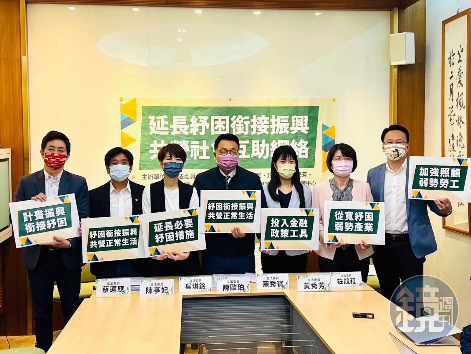 立法院日前協商,朝野立委同意將原定今年6月30日到期的「嚴重特殊傳染病防治及紓困振興特別條例」施行期間延長1年,到明年6月30日為止。正國會立委陳歐珀、陳亭妃、黃秀芳、吳琪銘、莊競程、陳秀寳、蔡適應上午舉行記者會,提醒政府從寬紓困弱勢產業、加強照顧勞工、投入金融政策工具、計畫振興銜接紓困,讓疫情軟著陸。