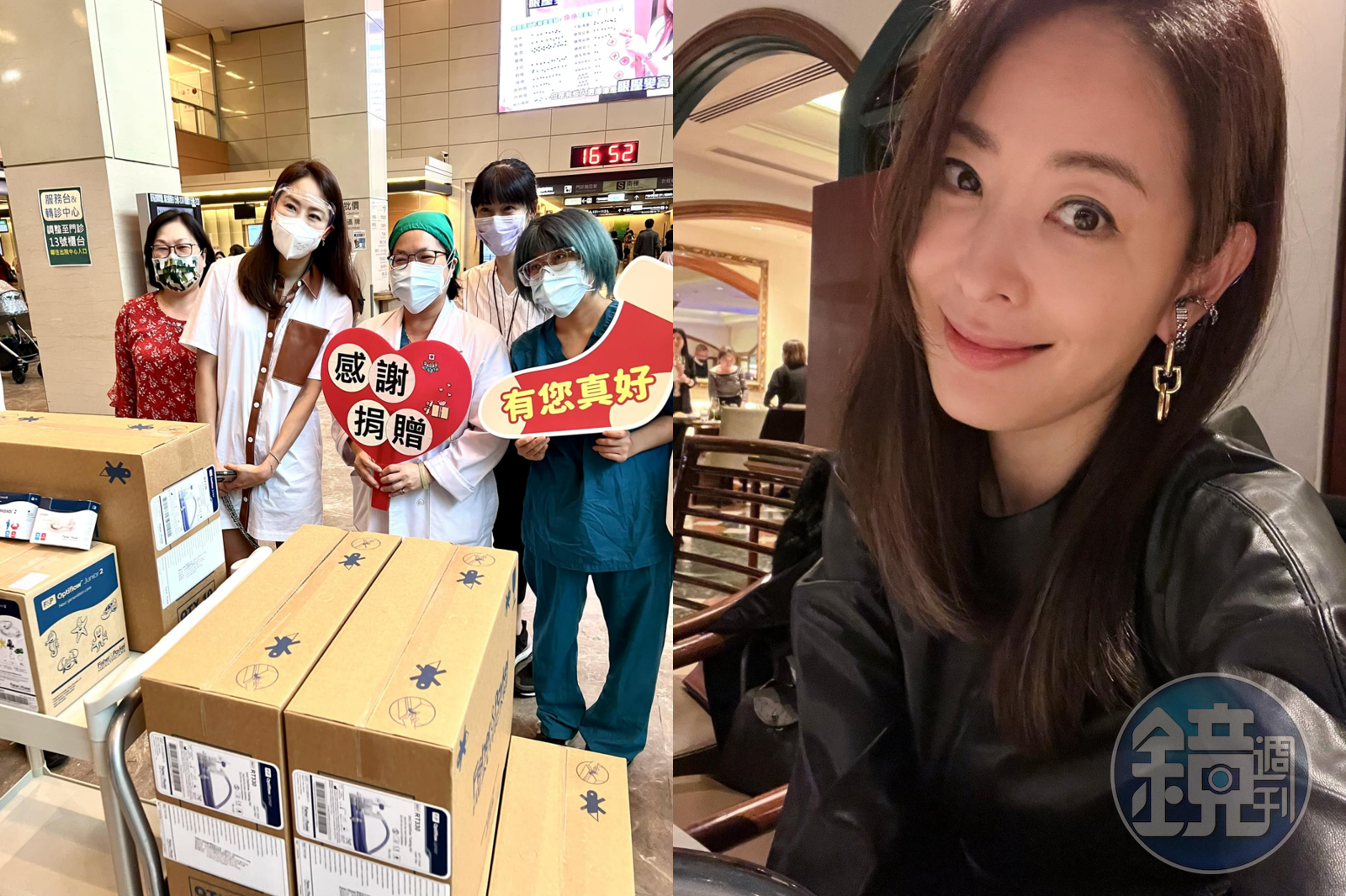 賈永婕(左圖左2、右圖)因為募得多台「救命神器」捐給醫院獲得「防疫女神」稱號,近來更持續在慈善崗位上努力。(翻攝自賈永婕的跑跳人生臉書)發布時間:2022.05.20 17:02 臺北時間