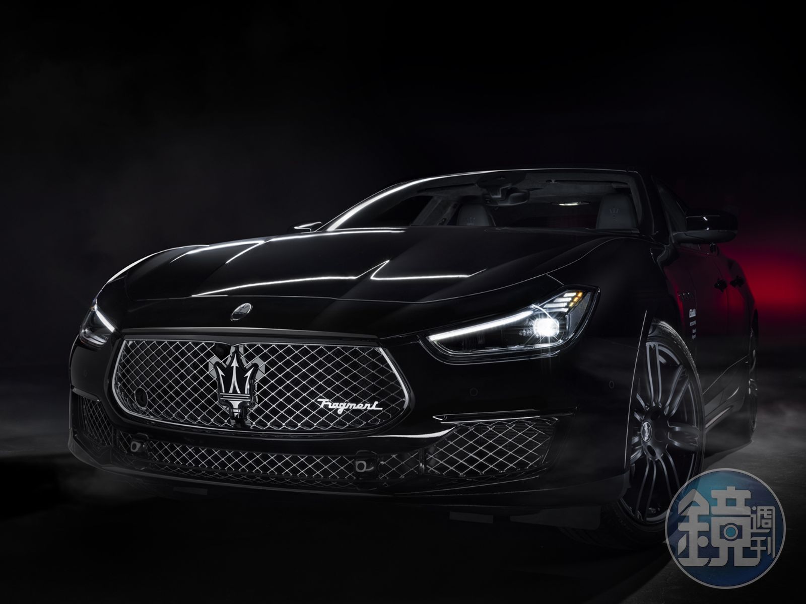 Ghibli【Fragment】只有兩種限定車色,以白色為基底的Opera Bianca以及黑色為基底的 Opera Nera;兩種配色都在車身下緣斜切出一道消光處理的黑色區塊,用以承接同樣為消光黑的20” Urano車款限定輪圈,並搭配亮黑色剎車卡鉗。車頭進氣霸重現1966年第一代Ghibli經典的網狀格柵結構,不僅代表 Maserati 作為性能車款的不凡氣勢,也代表街頭文化的工業風格;位於右下角的 Fragment 銘牌,以及C柱上的雙閃電標記,則強烈的展現出藤原浩所引領的潮流魅力。