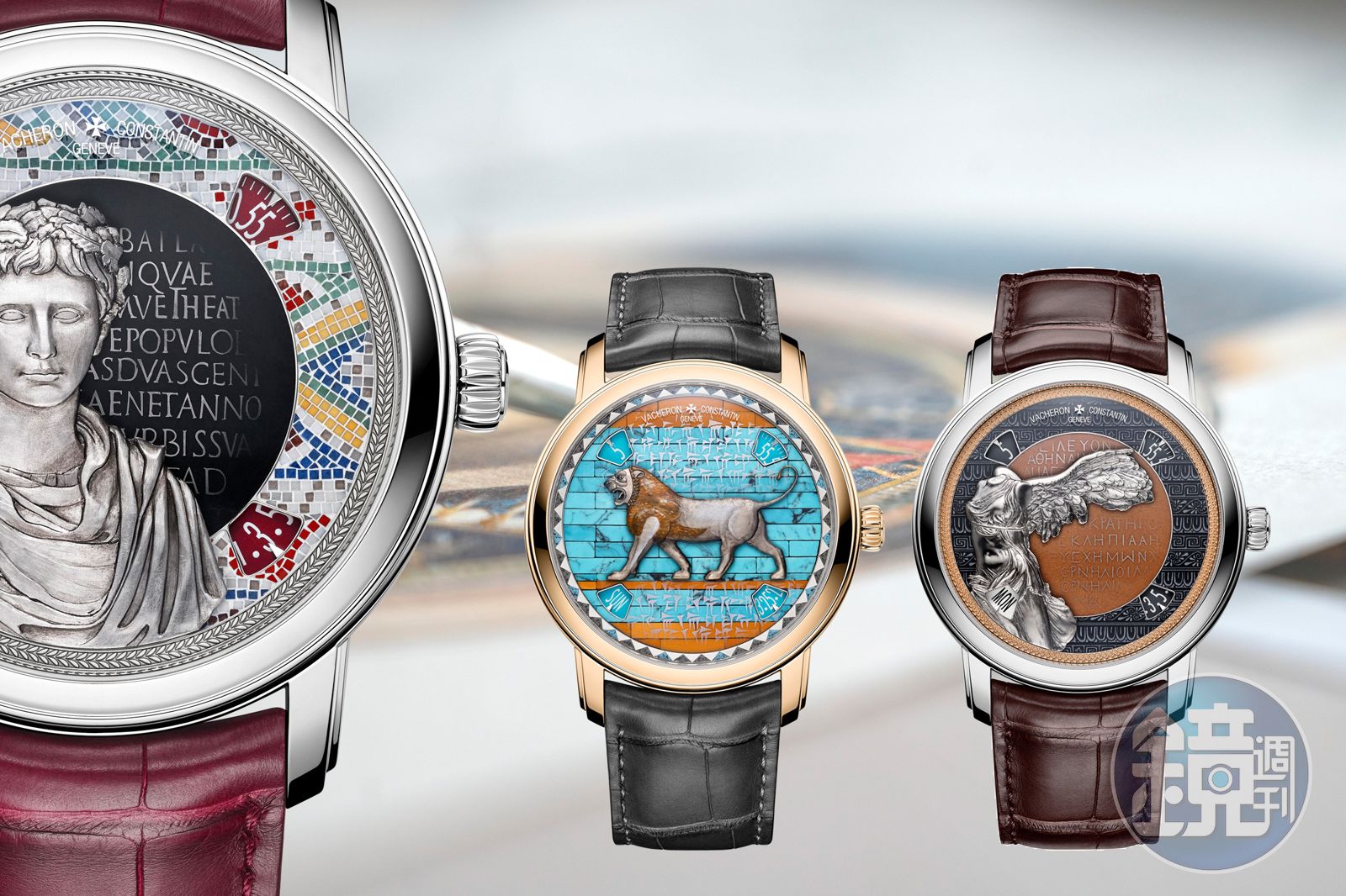 很多年前逛羅浮宮的時候拿過很貼心的導覽手冊,上面註明路線怎麼規劃就可以在既定的時間內,把著名的重點展品都看完,依稀記得好像還有根據停留時間長短去增減必看展品的不同版本,而這次江詩丹頓選的四款館藏作品都有被列在導覽手冊的必看名單裡頭。江詩丹頓跟羅浮宮的合作有種不證自明的合理性,他們旗下的藝術大師系列,完完全全就是個可以把羅浮宮館藏當作主題來取材的支線,像是量身打造的設定一樣。這次江詩丹頓選了獅身人面像、大流士雄獅、勝利女神還有奧古斯都半身像,這四個不同時期的作品,用琺瑯、金雕、寶石細鑲和微型馬賽克等技法創作了面盤主題。