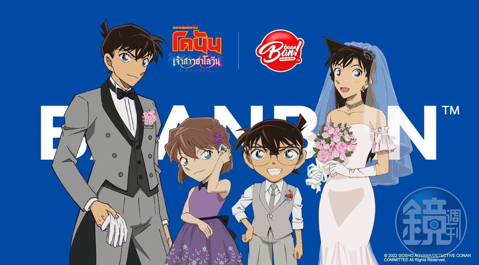 在《名偵探柯南》與BaanBan聯名的宣傳海報上,同時出現正常版與縮小版的工藤新一,而2人身旁分別站著毛利蘭(小蘭),還有灰原哀;對於這樣的搭配,粉絲們感到相當疑惑,難道意指工藤新一變成劈腿渣男,抑或是小蘭移情別戀,愛上了與工藤新一長得一模一樣的「怪盜基德」黑羽快斗。