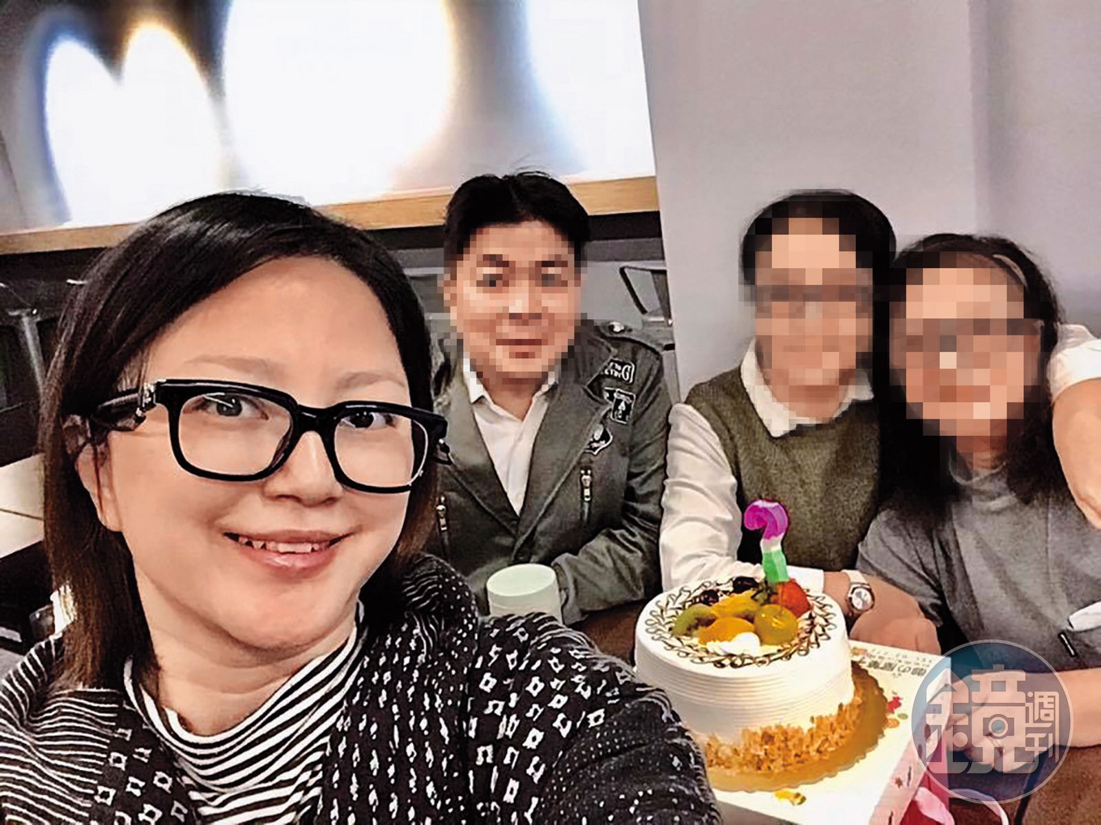 傅天穎(左一)出席聚會時,男友(左二)跟媽媽(右一)入鏡,顯見對方早已拜見過家長。發布時間:2022.05.24 16:12 臺北時間
