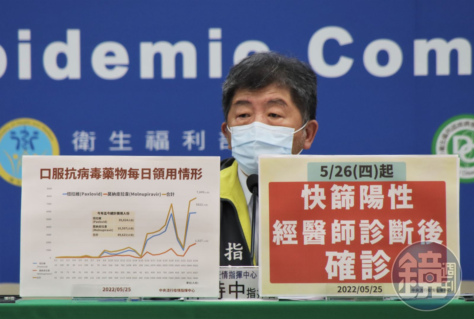 陳時中今(25)在疫情記者會被問到相關問題,回應若快篩沒有經過FDA認證,未來若快篩陽性可能不會被承認,主要是有台灣食藥署的緊急使用授權(EUA),快篩陽性才會被認可。