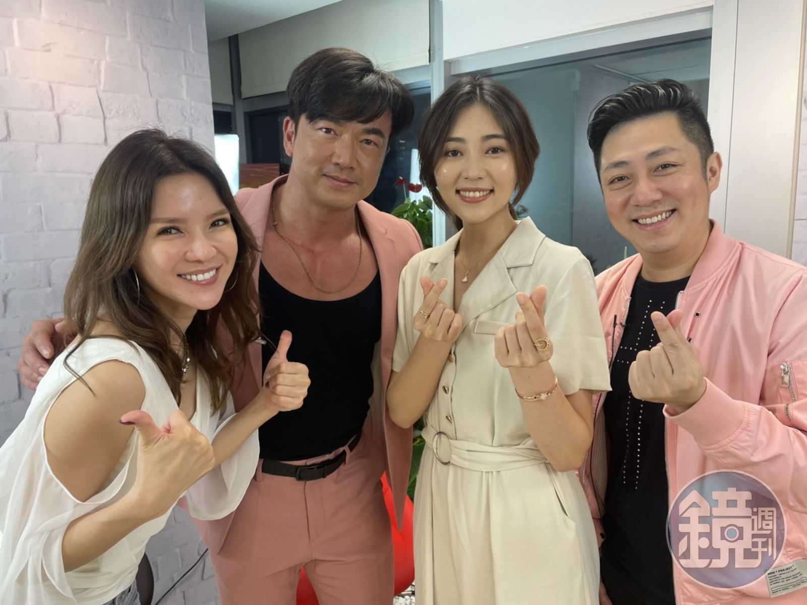 胡嘉愛(左起)、李沛旭、瑭霏、艾成一起在鳳凰直播看《外送英雄》前導片首映。(民視提供)發布時間:2022.05.26 12:05 臺北時間