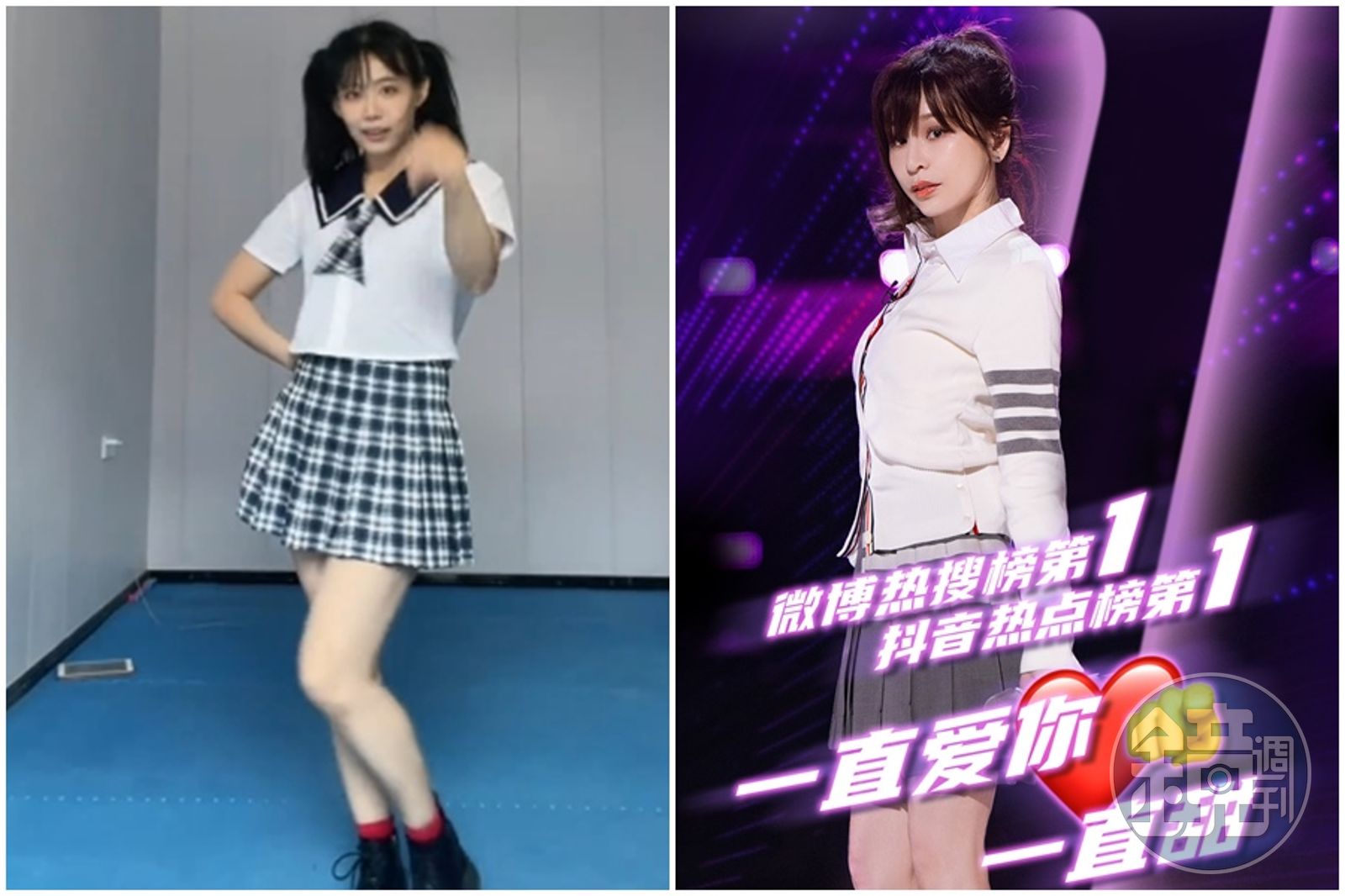 王心凌(右圖)近期參加《乘風破浪的姐姐3》翻紅,「台灣學姐」陳竹音(左圖)也跟著跳〈愛你〉。(翻攝自陳竹音、王心凌工作室微博)發布時間:2022.05.27 11:25 臺北時間