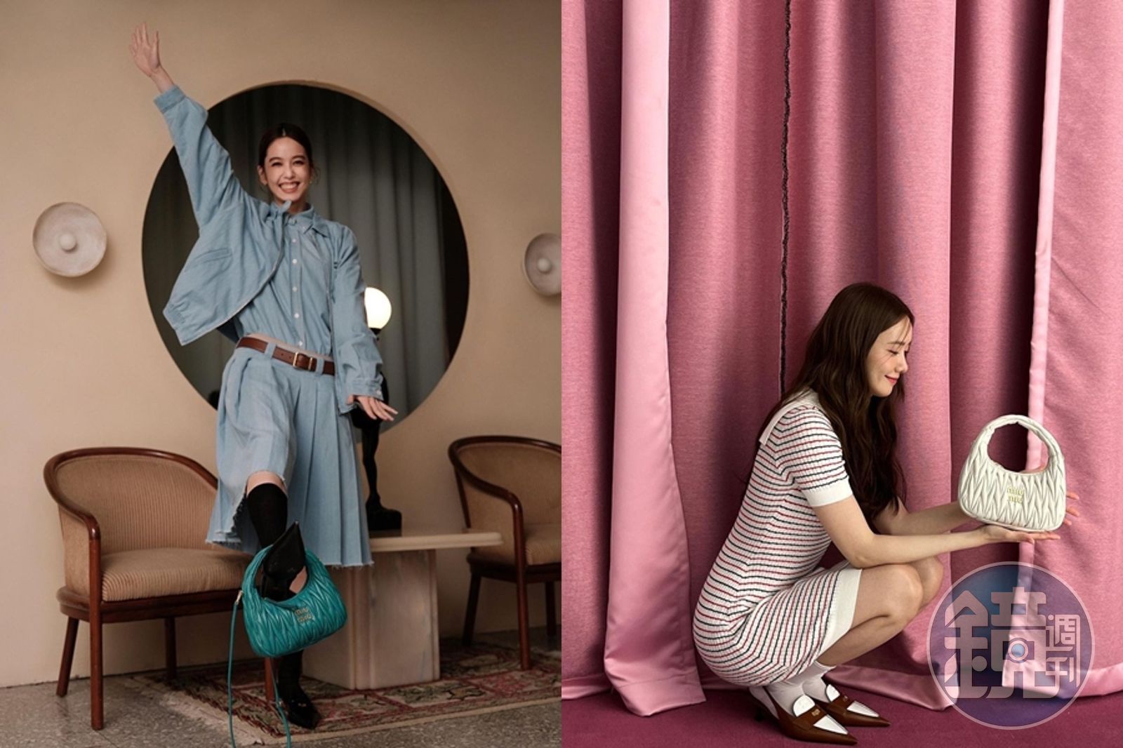 (左起)陳庭妮、潤娥,各自以不同詮釋方式,秀出全新的Miu Wander包款。(miu miu提供)發布時間:2022.05.27 15:47 臺北時間
