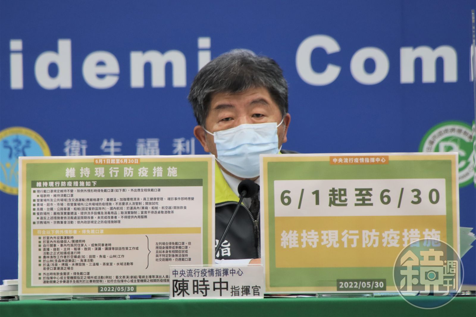 指揮中心今日宣布,鑒於COVID-19本土疫情持續升溫,且考量全台已進入大規模流行階段,為兼顧防疫、經濟及社會運作,維持國內防疫量能與有效控管風險,經綜合評估疫情情勢,現行戴口罩等防疫措施維持至今年6月30日,相關規定說明如下:
