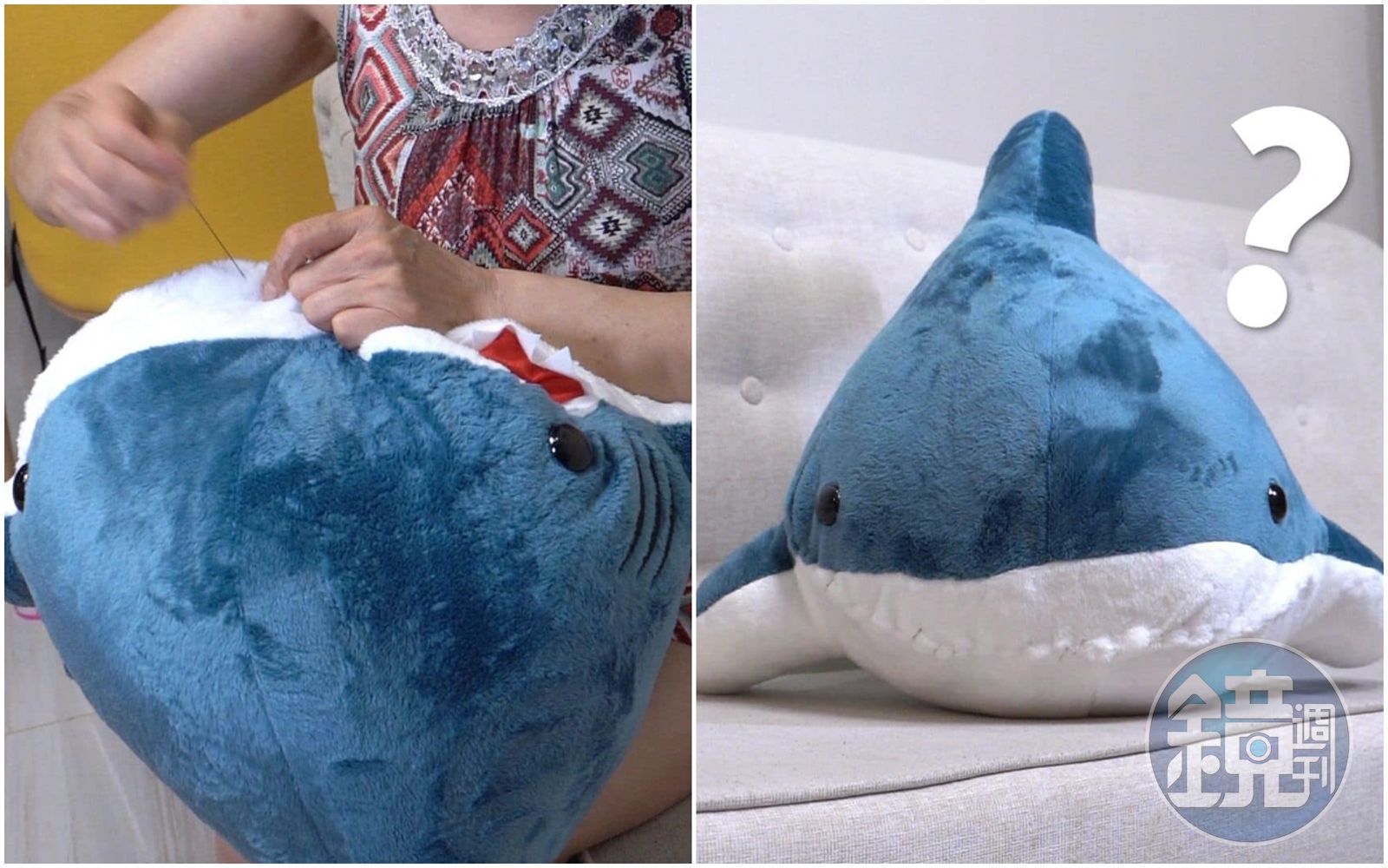 有名網友在臉書社團「爆廢公社公開版」po文,曬出一張愛貓窩在鯊魚睡袋的可愛照片,結果還附上2張鯊魚被縫嘴巴的照片,原po補充表示,因為愛貓鑽進去玩的時候,被阿嬤看到了,結果隔天阿嬤就把鯊魚的嘴縫起來了。