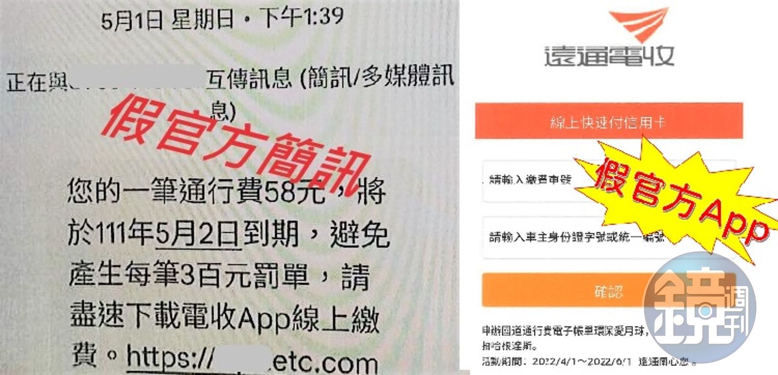 警方調查,邱男其實並不是下載遠通電收ETC的官方App,而是進入詐騙集團用來騙取信用卡資料、且進行盜刷的「釣魚網頁」。