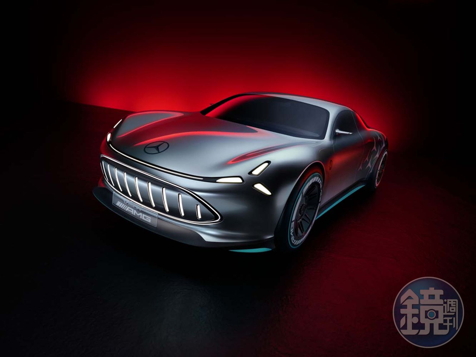 採用全新電動模組化底盤AMG.EA的Vision AMG,外觀延續的品牌的美學,採用前衛的線條與誇張的長軸距短前懸車身比例,創造出強烈的視覺感受,源自於Vision EQXX概念車的尾翼與三芒星造型的頭燈,也陳述了這部車的身份。