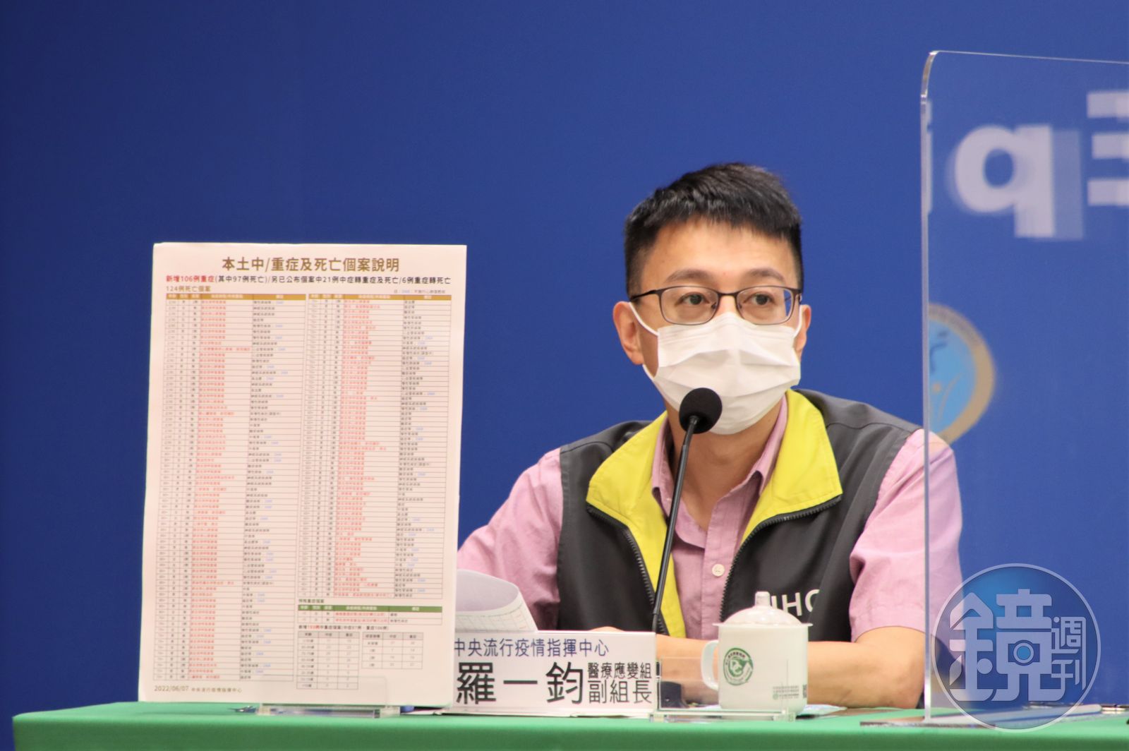 醫療應變組副組長羅一鈞指出,新增87例中症、106例重症,另有36例中症轉為重症,死亡個案為67例男性、57例女性,年齡介於未滿5歲至90歲以上,皆屬重度感染個案,有116有慢性病史、81人未打滿3劑疫苗含47人未接種任何疫苗,而54人超過80歲以上。
