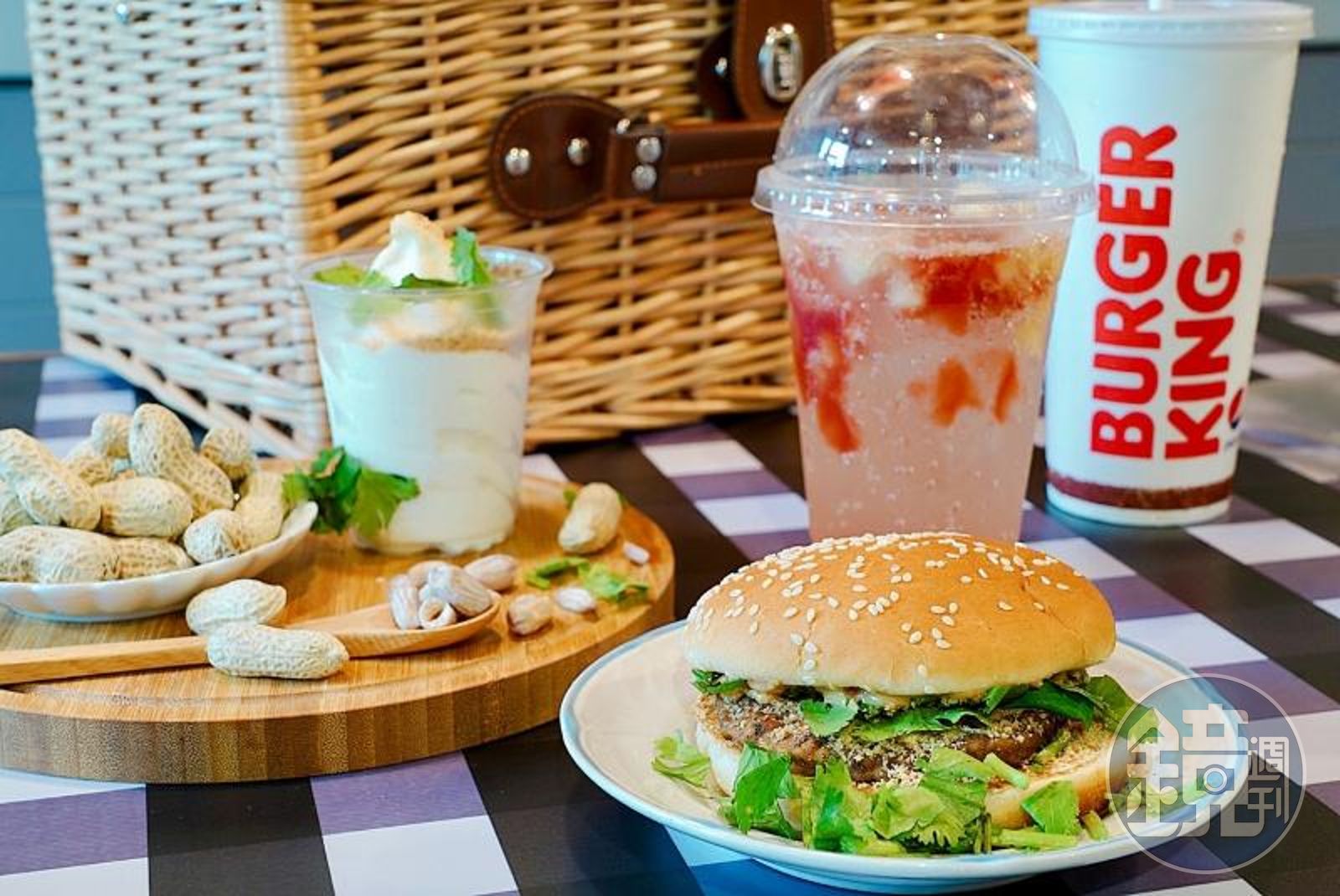 「花生香菜刈包烤牛堡」融合漢堡王招牌漢堡竟混搭傳統台式刈包,以顆粒花生醬撒上花生糖粉與香菜,搭上經典美式烤牛肉,單點99元、套餐價109元。「古早味花生香菜聖代」則為香草聖代撒上古早味花生糖粉,最後再點綴香菜讓香氣升級,單點59元,套餐加購價49元,6月7日至6月13日限時臨櫃消費加價購39元。