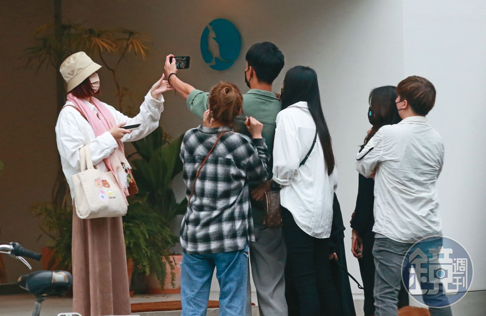 到了下午4點半左右,毛弟與吳品潔在旁邊拍完照,一行人也陸續出來,留下各式的紀念合影;在此期間,郭雪芙摸了一下毛弟的背,也和吳品潔閒聊幾句,由此可知2對情侶平常有互相交流,才能如此自然就像妯娌間的交集。