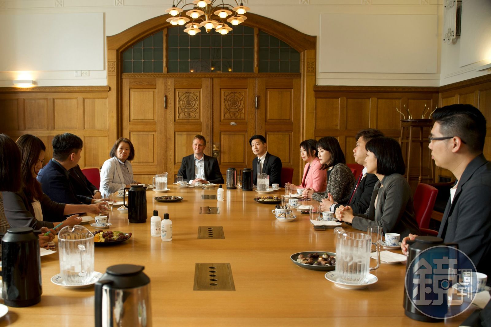 訪問團8日抵達丹麥,一下機先前往哥本哈根市政廳,由當地市議員王海蒂代領導覽,並在駐丹麥代表李翔宙陪同下,與哥本哈根市長路特肯會面。