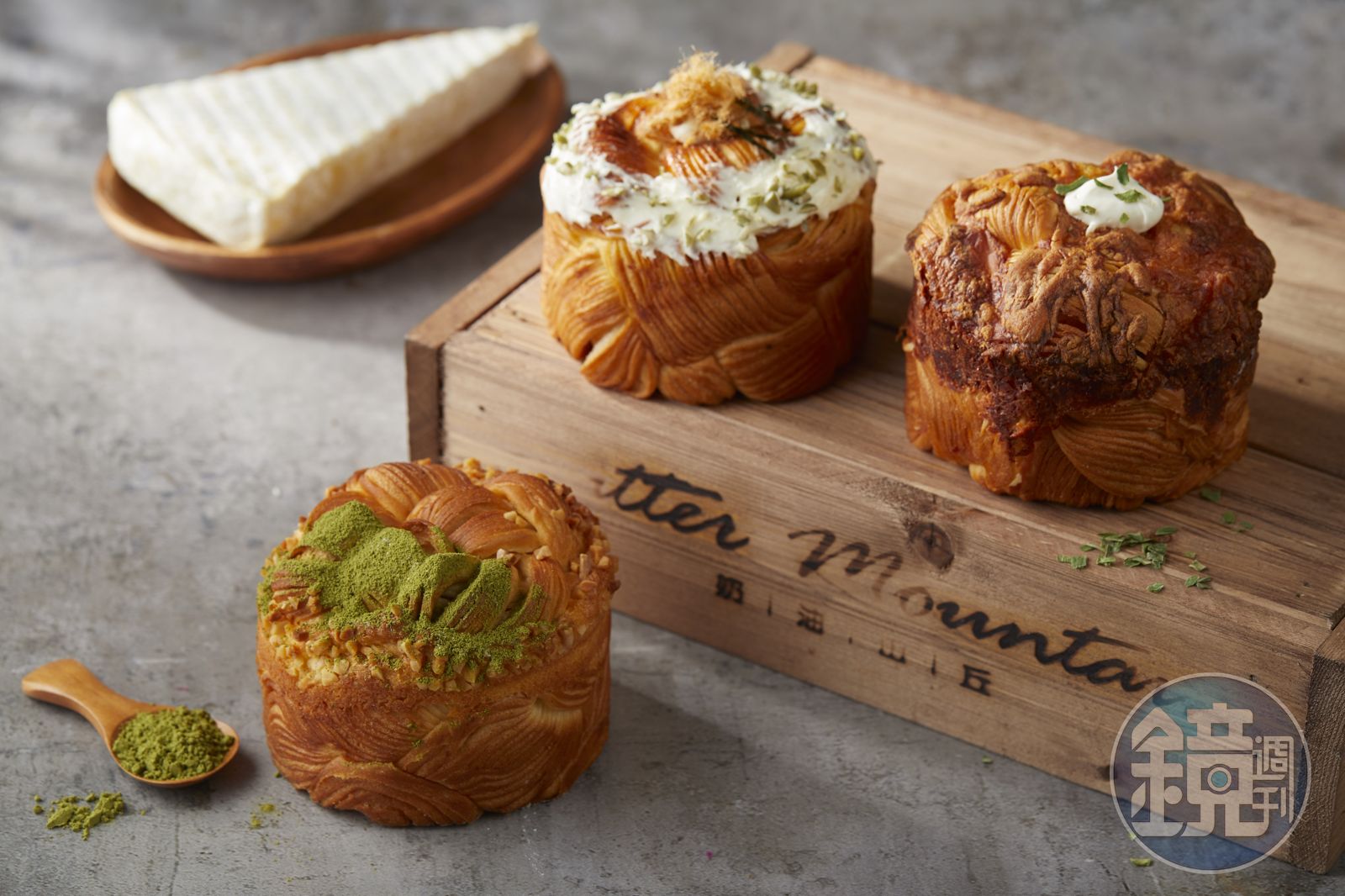 基本款通常都是必吃,原味「重奶油」毛線球也不例外。(170元/個,奶油山丘提供)市面上較少見的口味就屬內外都吃得到紅豆的「相思奶霜」。(230元/個,奶油山丘提供)罪惡的熱量跟美味交織的「金沙芋泥」。(240元/個)酸香的野莓結合濃醇香乳酪的「仲夏野莓乳酪毛線球」。(230元/個,奶油山丘提供)讓人不禁聯想到台式肉鬆麵包的鹹口味「肉脯乳酪」。(240元/個,奶油山丘提供)「奶油山丘」的主角並非一枝獨秀,手工現做現烤的「優格塔」系列的豐富度完全不輸「奶油毛線球」,扣除「草莓」、「芋頭」、「抹茶」等接受度高的基本款,其中「伯爵紅茶」口味選用了榮獲2012年「加州葡萄城市盃」的冠軍巧克力馬卡龍作為點綴,再淋上特調栗子醬,讓優格塔也能有濃郁樣貌,擺脫清爽既定印象。