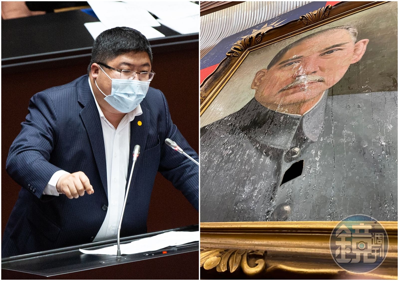 立院日前在混亂中三讀通過《會計法》修正案,過程中藍綠立委爆發激烈推擠衝突,甚至還有藍委丟水杯意外砸破國父遺像,引發網路熱議。臉書粉專「公民審議-立委監督專區」日前也po出當天的慢動作影片,揪出砸毀國父遺像的凶手,就是桃園市立委魯明哲。