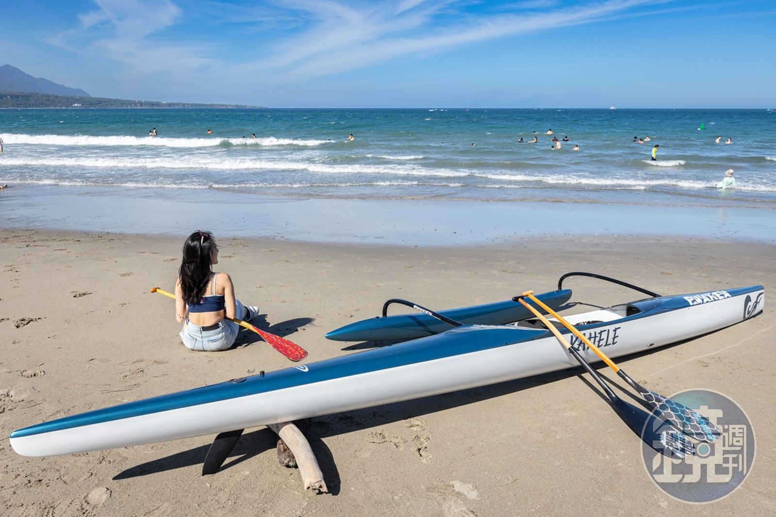 近日因採訪需求前往台東,偶然在杉原灣海邊遇見一架長相奇特的船,外型好似獨木舟、又似菲律賓螃蟹船,引發我的好奇。原來這是台東縣政府引進的海上超特別玩法,稱為「支架大洋舟(Outrigger Canoe)」。