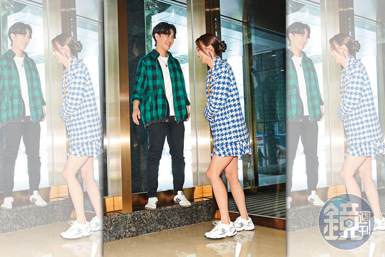 施名帥(左)、陳庭妮(右)合影,男方站在落地窗台上,欸~兩人的官方身高都號稱175公分,事實的真相只有一個!(柯南指)發布時間:2022.06.19 05:58 臺北時間