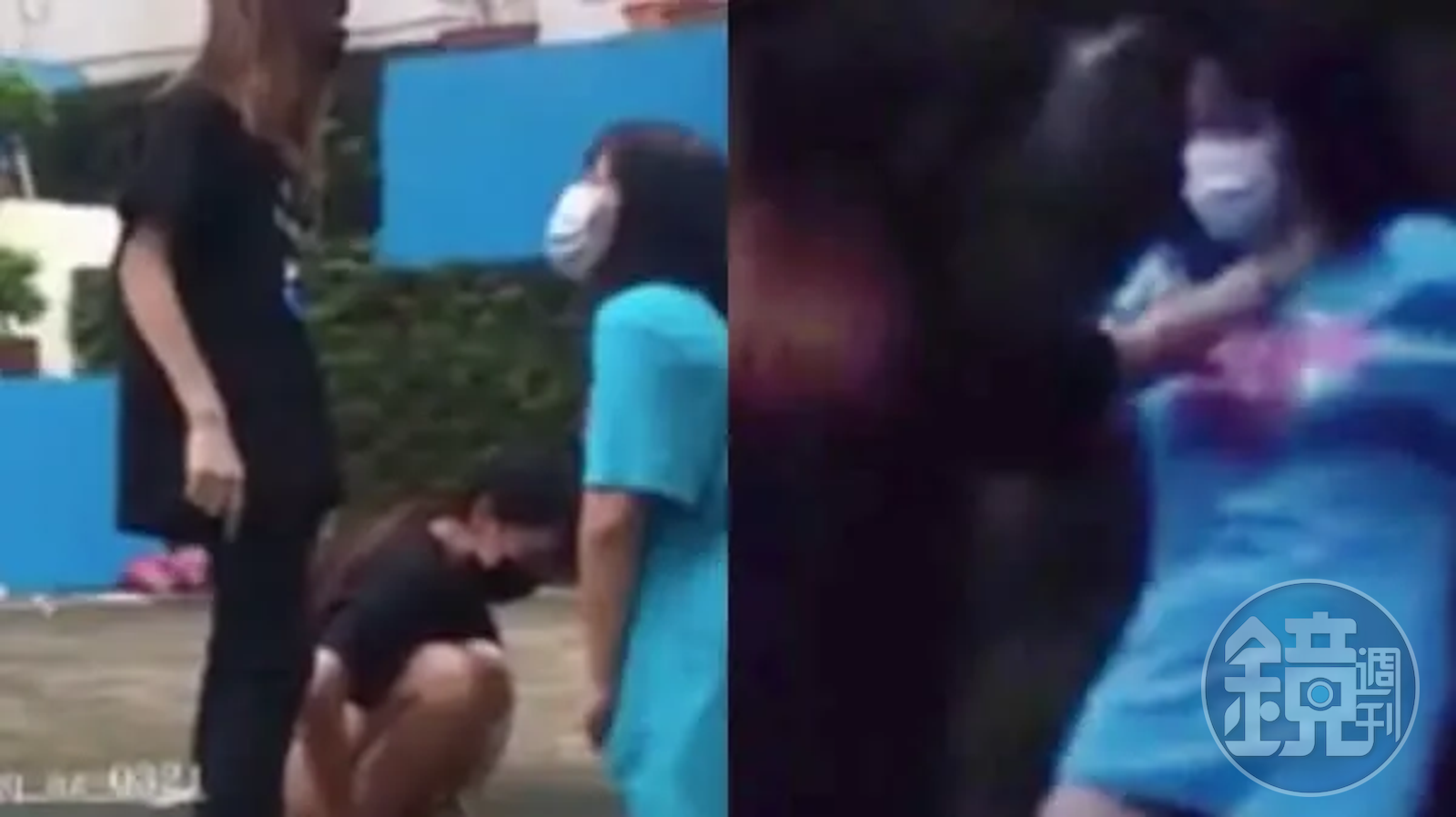在曝光的畫面中可見,2名女子對一名身穿運動服裝的國中女學生施暴,另1名男子則用手機側錄整段過程,施暴者在影片寫下「水不撩不知深淺,人不拼不知輸贏」,2女不僅又踹又打、賞巴掌、用力掐被害者頸部,還逼對方下跪並抽打腿部,手段相當凶狠,整個過程女學生都無法反抗。