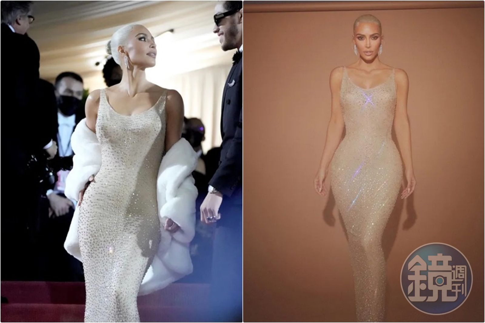 美國名媛金卡戴珊穿著瑪麗蓮夢露古董禮服亮相,卻被發現禮服撐壞。(翻攝金卡戴珊IG)發布時間:2022.06.18 08:52 臺北時間