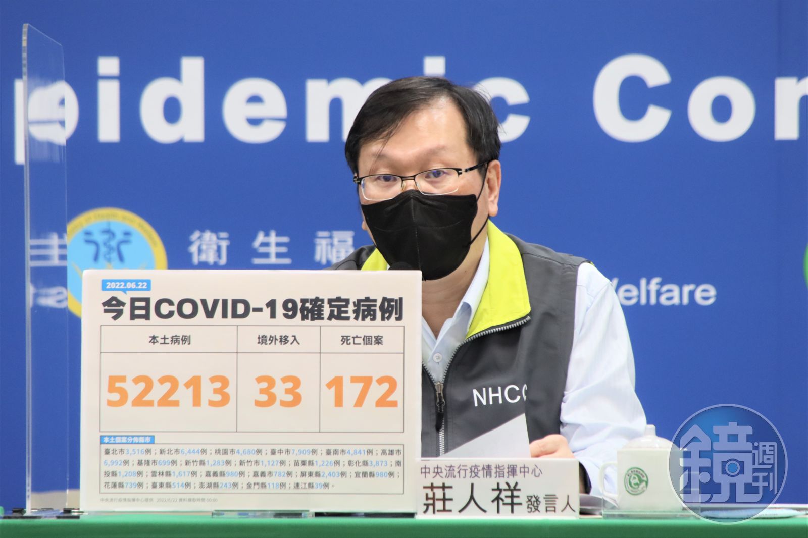 指揮中心表示,今日新增之52,213例本土病例,為24,760例男性、27,429例女性、24例調查中;年齡介於未滿5歲至90多歲以上;個案分布為台中市7,909例、高雄市6,992例、新北市6,444例、台南市4,841例、桃園市4,680例、彰化縣3,873例、台北市3,516例、屏東縣2,403例、雲林縣1,617例、新竹縣1,283例、苗栗縣1,226例、南投縣1,208例、新竹市1,127例、嘉義縣980例、宜蘭縣980例、嘉義市782例、花蓮縣739例、基隆市699例、台東縣514例、澎湖縣243例、金門縣118例、連江縣39例。