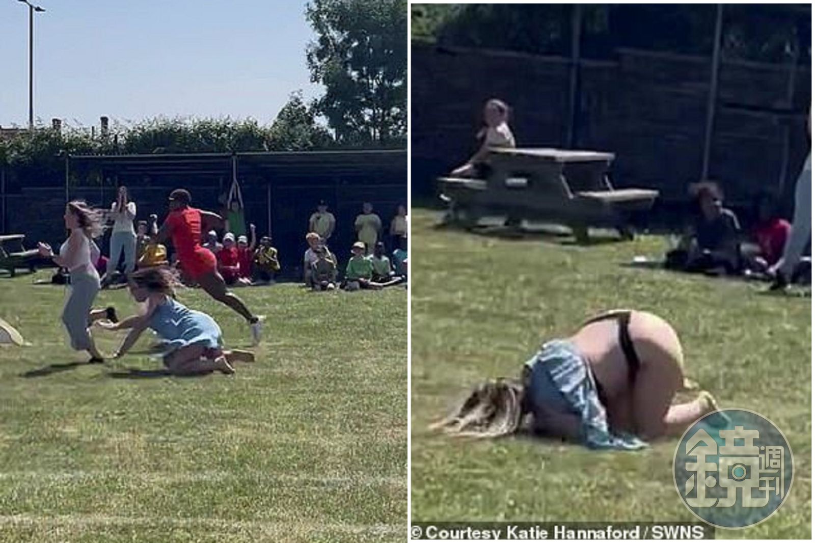 據英國《每日郵報》報導,哈娜佛德上周參加女兒的學校運動會,其中一項活動,即由父母下場賽跑。當天哈娜佛德穿著連身裙洋裝,在比賽過程中,她不慎腳步錯亂,自己絆倒自己,結果下一秒,悲劇發生了!