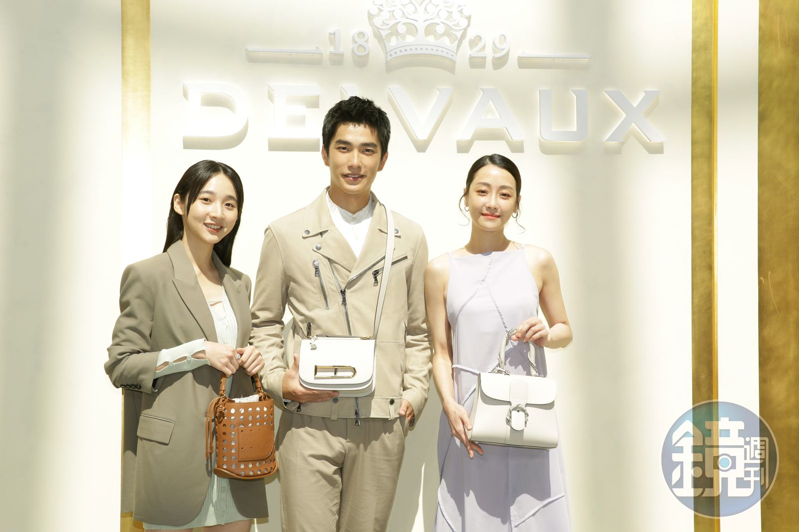 (左起)李沐、曾敬驊、謝欣穎一同出席DELVAUX BELLAVITA台北期間限定店開幕活動。發布時間:2022.06.23 08:23 臺北時間
