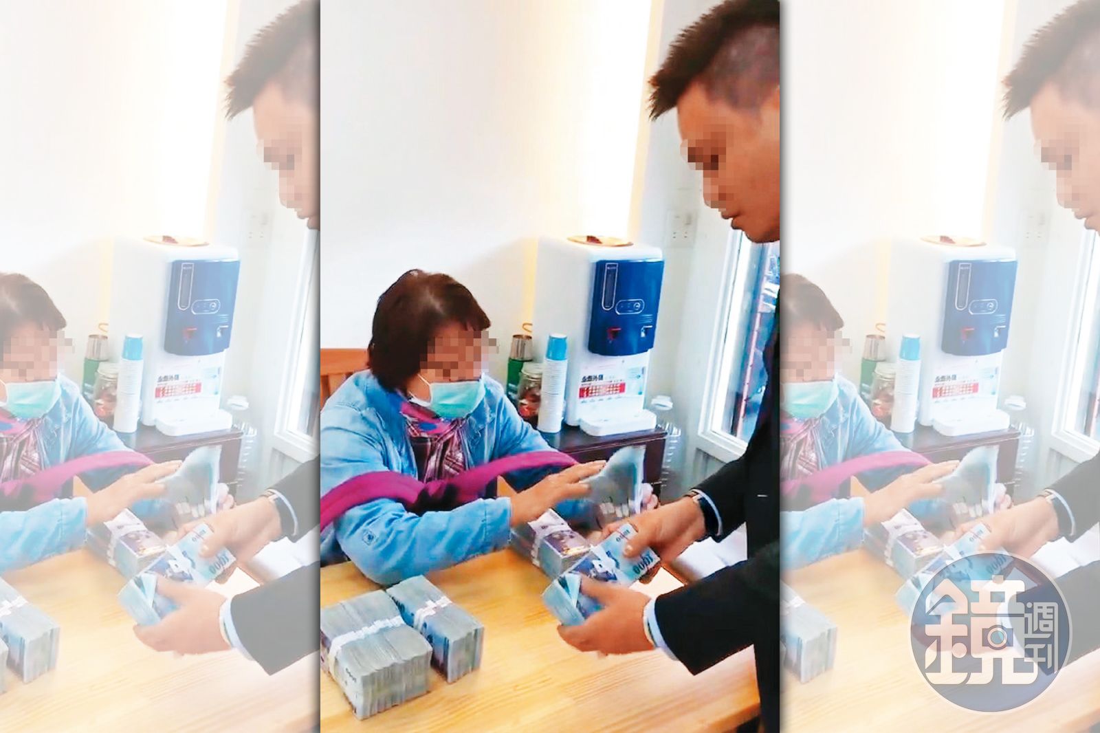 同一時間,劉姓主管拿出300萬元現金,要求A女士當場清點,並要她簽署借據和切結書,內容為她未遭強迫、暴力手段要脅,還錄影存證。隨後,劉姓主管取走其中的80萬元,交由女代書、車手等人平分,剩餘220萬元則由A女士帶走。