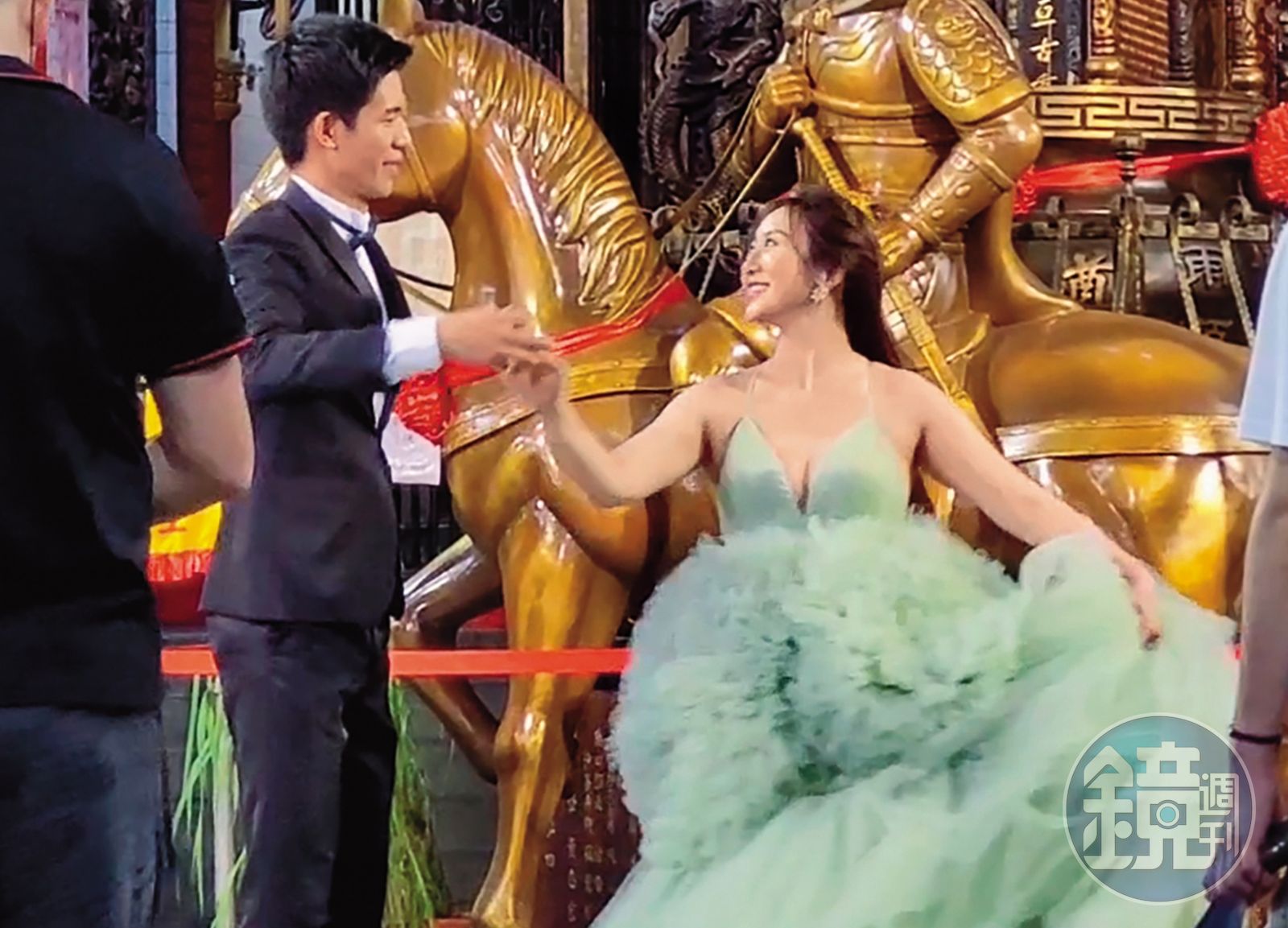 拍攝當天,蔡允潔並沒有穿上白紗,而是換了兩套綠色系禮服,為了取景拍攝,更動員了12名工作人員,看得出很慎重。