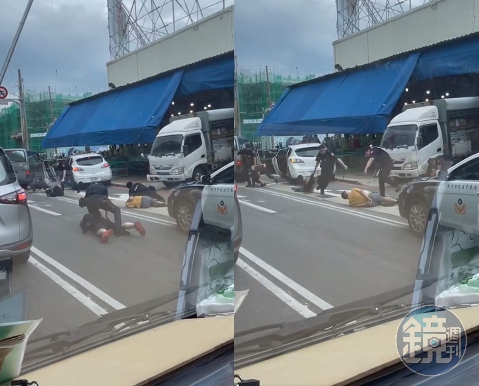 一名網友在「爆廢公社公開版」貼出一段「療癒」片段,說明這是保安大隊在路上抓「屁孩」的過程。影片中4名警員肉身攔下一台白色轎車,而畫面一開始已有2人被壓制在地,但轎車上的駕駛不聽勸仍執意往前開,隨後警員上前先是拉下後座乘客,下秒揮動警棍強力壓制,駕駛座嫌犯眼看逃不了,才開門自行趴地投降。
