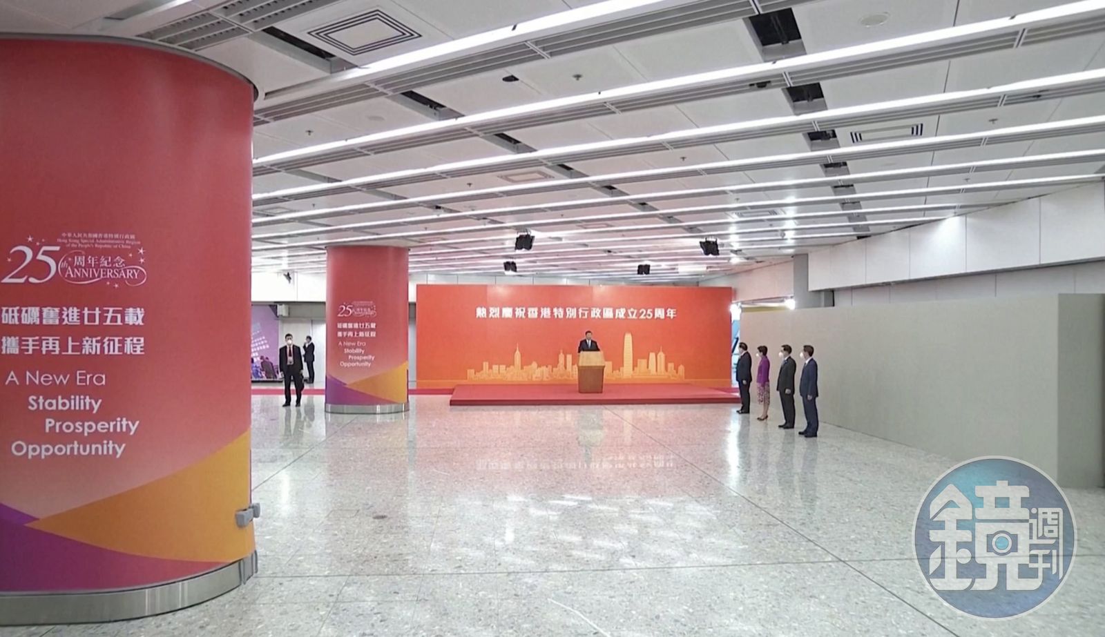 今日是中國正式接管香港25周年,中國國家主席習近平在昨日搭乘高鐵抵達香港,準備出席一系列慶祝活動。不過外媒記者也發現,昨日習近平在高鐵站廣場舉行演說時,現場以維安與防疫為由,故意將「社交距離」拉得超大,習近平演說前的大片廣場,幾乎空無一人。