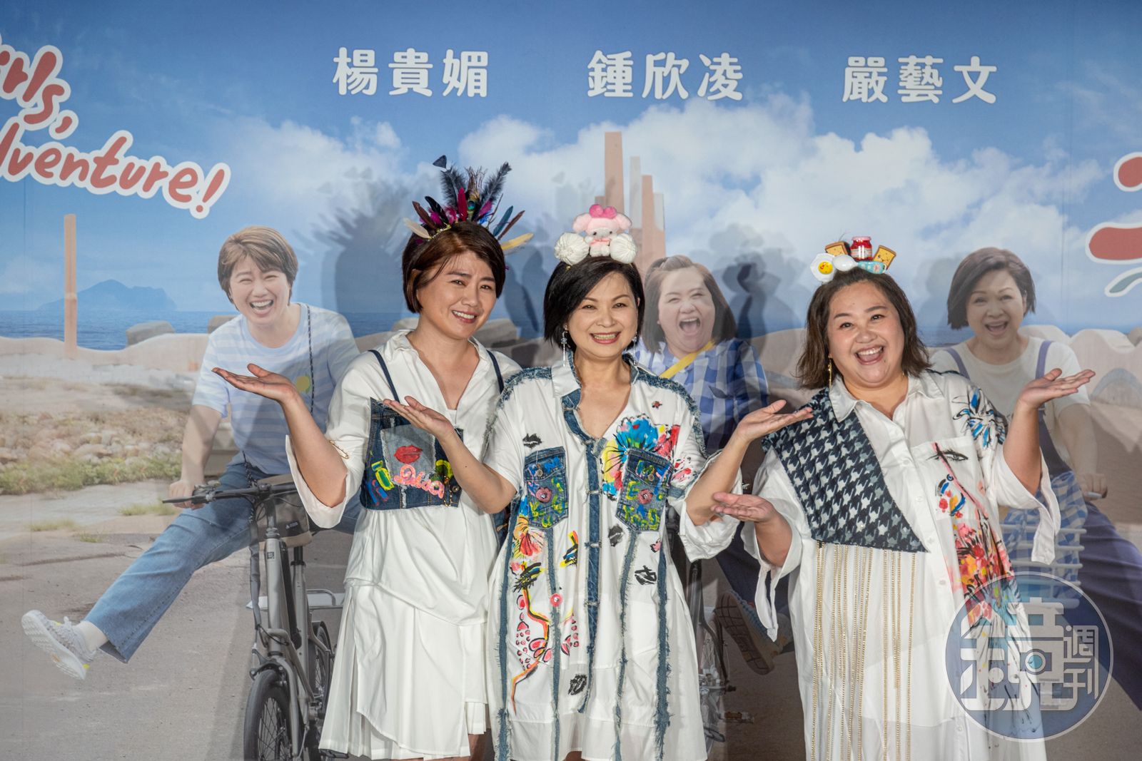 楊貴媚、鍾欣凌、嚴藝文主持公視《老少女奇遇記》,今(4日)舉辦首播記者會,身兼總製作人及主持人的楊貴媚表示,「當時去開會不知道自己是總製作人,要做什麼都還不太清楚,也非常緊張擔任總製作人會非常艱難,但還好我有堅強的團隊,甚至還有這2位閨密(主持人鍾欣凌、嚴藝文)我才敢做這些事情。」而因為實境節目錄影很辛苦,記者會上嚴藝文還自爆料,「因為真的很累、很熱、很餓,錄影時常常對導演發脾氣。」