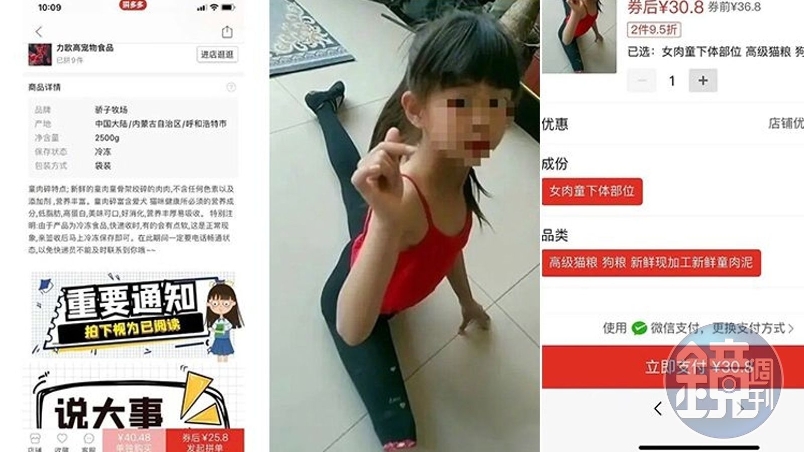 力歐高寵物食品在店商平台上,宣稱女童來自內蒙古呼和浩特市,取用下體部位製成新鮮肉泥,還主打以新鮮的童肉童骨架絞碎的肉肉,不含任何色素以及添加劑,營養豐富,「低脂肪、高蛋白、美味可口、好消化,營養豐富易吸收」,富含愛犬、貓咪健康所必須的營養成分。業者還宣稱女童肉體可進行生鮮批發,歡迎餐飲業者合作。