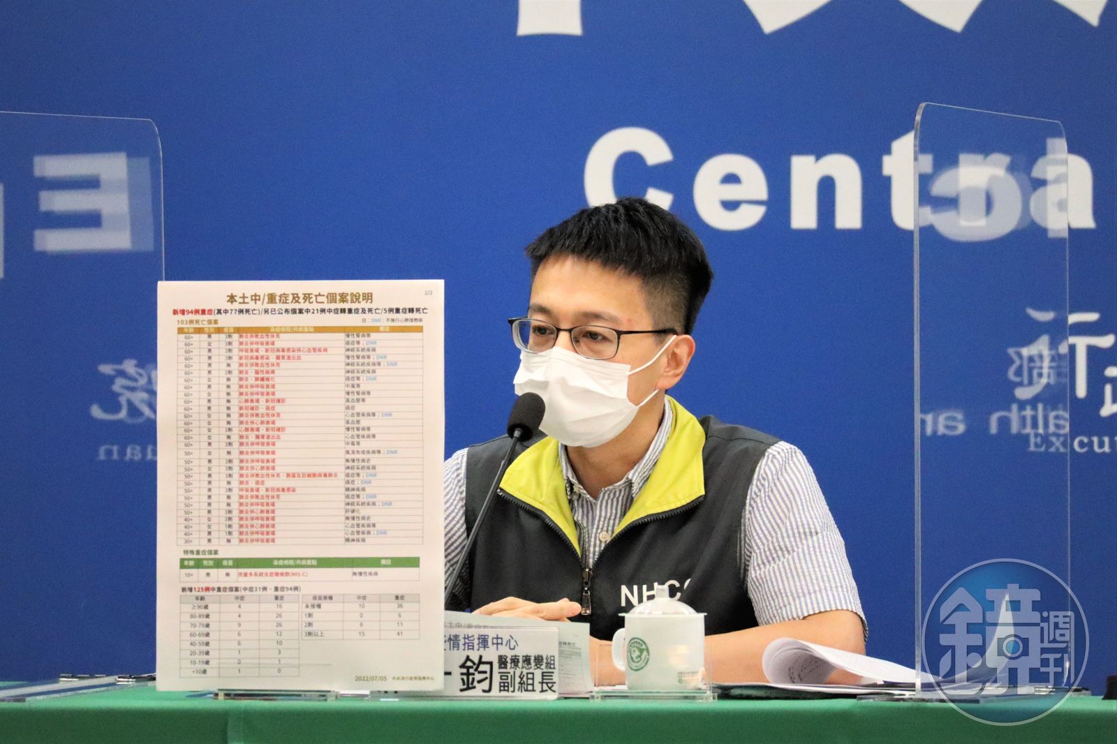 而今天新增103人死亡中,羅一鈞補充表示,年紀最輕為30多歲男性個案,本身未接種過任何一劑COVID-19疫苗,有慢性的精神疾病,於6月21日出現相關症狀,檢驗後確定陽性,立即住院治療,不過後來出現肺炎、呼吸衰竭等症狀,最終於6月30日病性病逝。