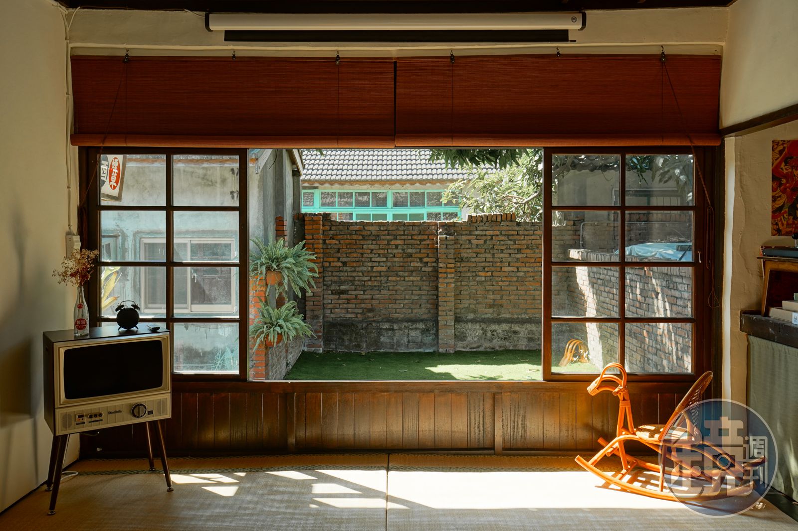 為打造「沉浸式」眷村住宿體驗,屋內放了許多當年的舊擺設。1983年生產的紅白機是 7、8年級生的共同回憶。客廳的復古拉門真空管電視不僅能看數位頻道,還可以玩遊戲機。眷待期休憩所