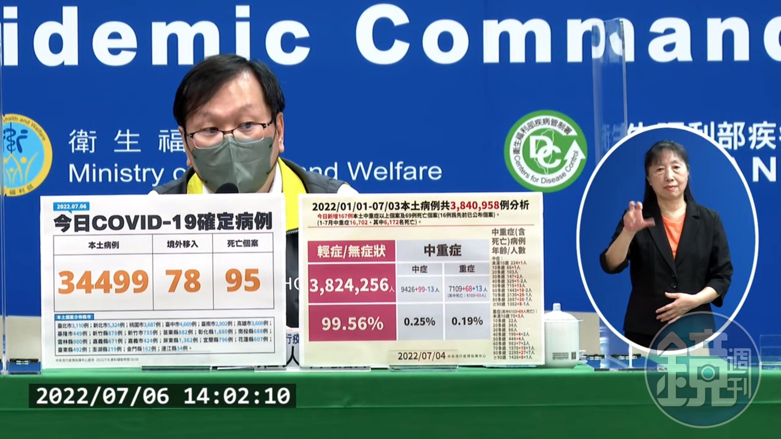 醫療應變組副組長羅一鈞補充說明,死亡個案中包含1名1歲男童,其本身有先天性神經系統疾病,長期使用呼吸器,6月30日發病,有嘔吐、呼吸喘、發燒、活動力及食欲下降等症狀,7月1日送醫急診中心跳停止過世,死因為新冠病毒感染及先天性神經系統疾病,列為共病。