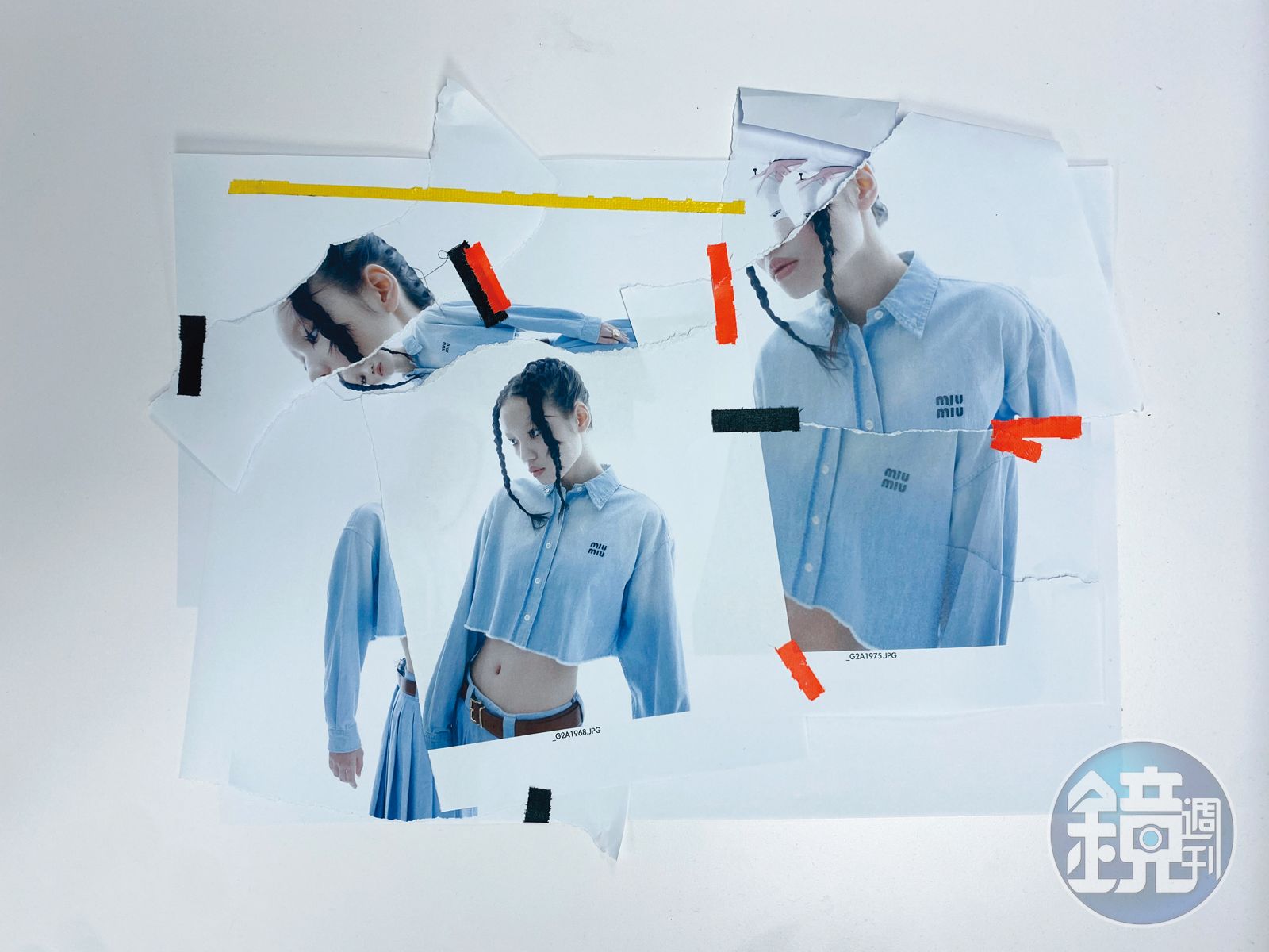 丹寧Logo襯衫上衣 NT$120,000 by GUCCI/白橘直條紋細肩上衣 NT$6,730 by sandro/丹寧Logo牛仔喇叭褲 NT$47,000 by GUCCI/湖水綠亮片高跟穆勒鞋 價格店洽 by LOEWE/Dulcis耳釘NT$6,350、Dulcis鍊墜 NT$6,850、Letra手環 NT$2,650 by SWAROVSKI 淺色的丹寧是夏季最好的搭配利器,而今年絕對不能沒有的之一便是淺色的丹寧套裝,前往度假勝地時,隨興搭配小可愛與厚底鞋便很有型。其二便是印在布料上的Logo monogram,兩者結合,讓妳時髦不費吹灰之力。
