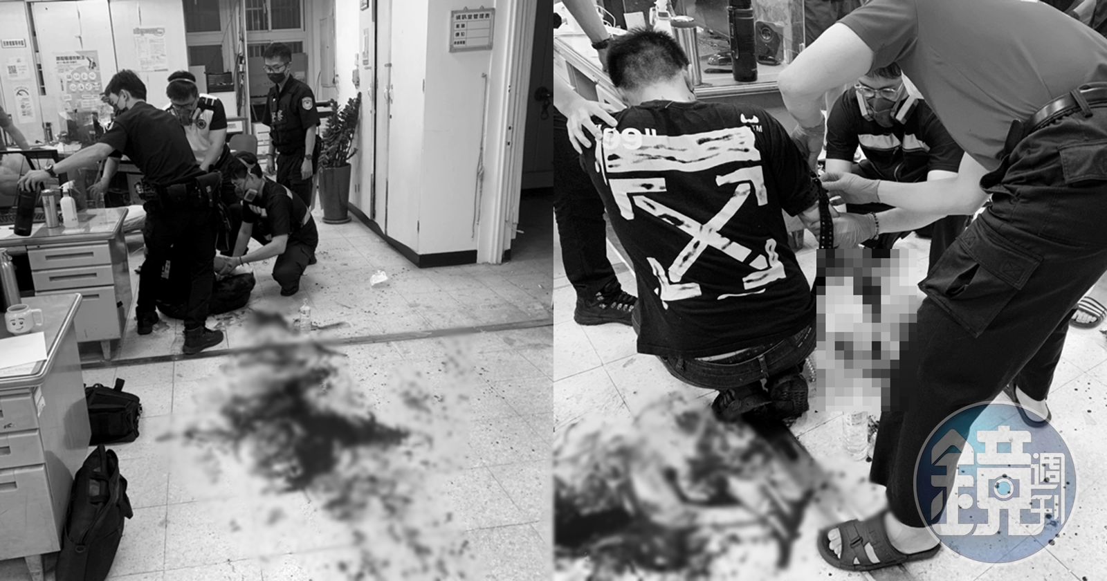 警方見狀立刻上前幫忙止血,並通報救護人員將於男送醫,其右手腕約5公分斷裂,所幸他意識清楚、無生命危險。警方指出,於男的行為已觸犯公共危險罪、妨害公務罪,待其傷勢穩定後將依法究辦。